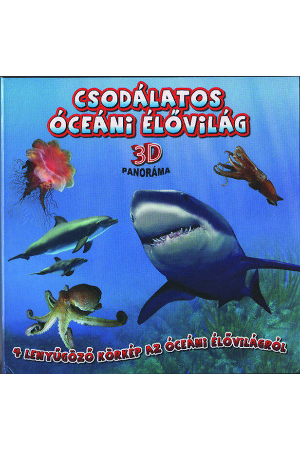 4 színes, csodálatos térbeli körképet találsz a panorámás szétnyitható oldalakon, melyek számos információval szolgálnak az óceán állatairól.