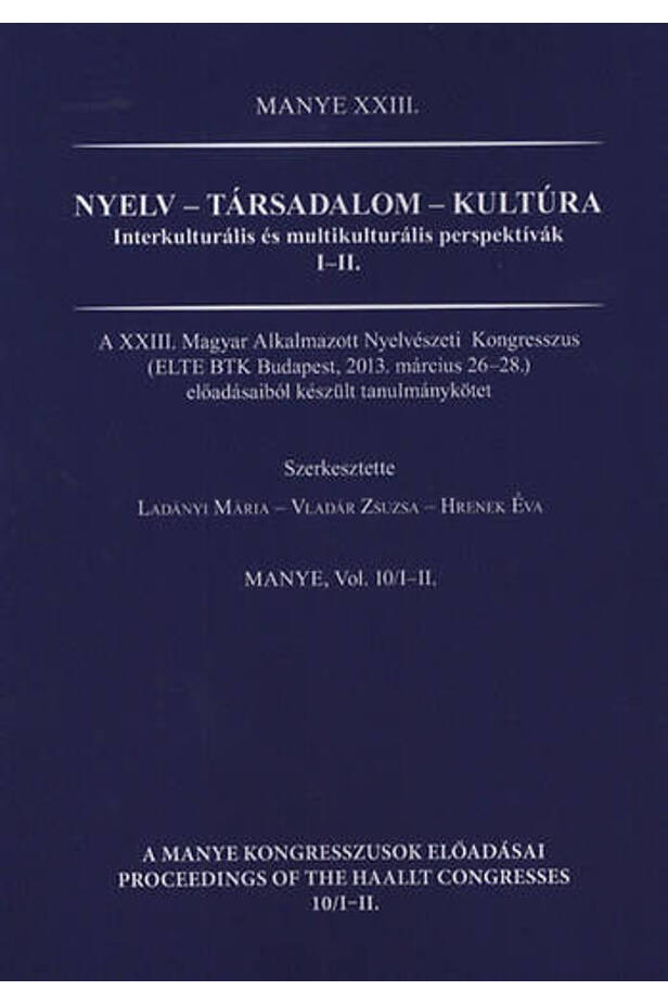 A XXIII. Magyar Alkalmazott Nyelvészeti Kongresszus (ELTE BTK Budapest, 2013. március 2628.) előadásaiból készült tanulmánykötet. A kiadvány elektronikus változata (a nyomtatott kötet CD-melléklete) tartalmazza a csak elektronikusan megjelenő II. rész mellett a nyomtatásban megjelenő I. rész anyagát is..
